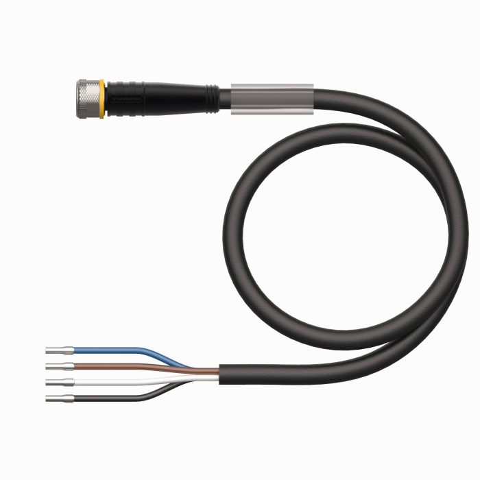 Rallonge, connecteur femelle M8, droit, 4 broches vers connecteur mâle M8, droit, 4 broches ; longueur de câble : 2 m, matériau de la gaine : PUR, noir ; homologation cULus |